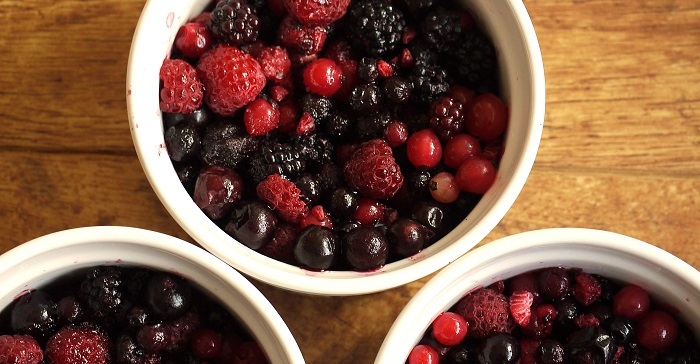 Fruit: 3 cups fresh berries. I usually use a pint of blueberries, half-pint red raspberries, and quartered strawberries to make up the difference. Evenly spread fruit into bottom of unbaked pie crust.