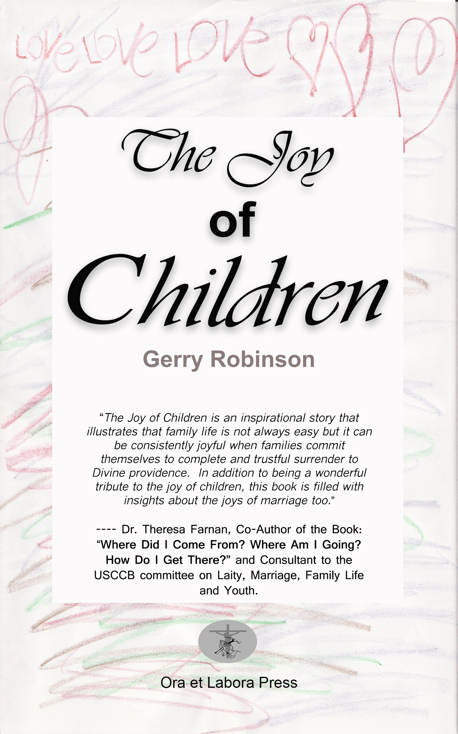Finally, Dr. Theresa Farnan, Mother of Ten and Consultant to the USCCB on Catholic Youth, Marriage, Family, and Laity said, “The Joy of Children is a candid, funny, first person account of a family that lives the meaning of "Thy kingdom come, Thy will be done" and never seem to want for their "daily bread. Gerry and Mary Robinson and their beautiful family are living proof that God is never outdone in generosity. In addition to being a wonderful tribute to the joy of children, this book is filled with insights about the joy of marriage. The Robinsons' inspirational story illustrates that family life is not always easy but it can be consistently joyous when families commit themselves to complete, trustful surrender to Divine providence."