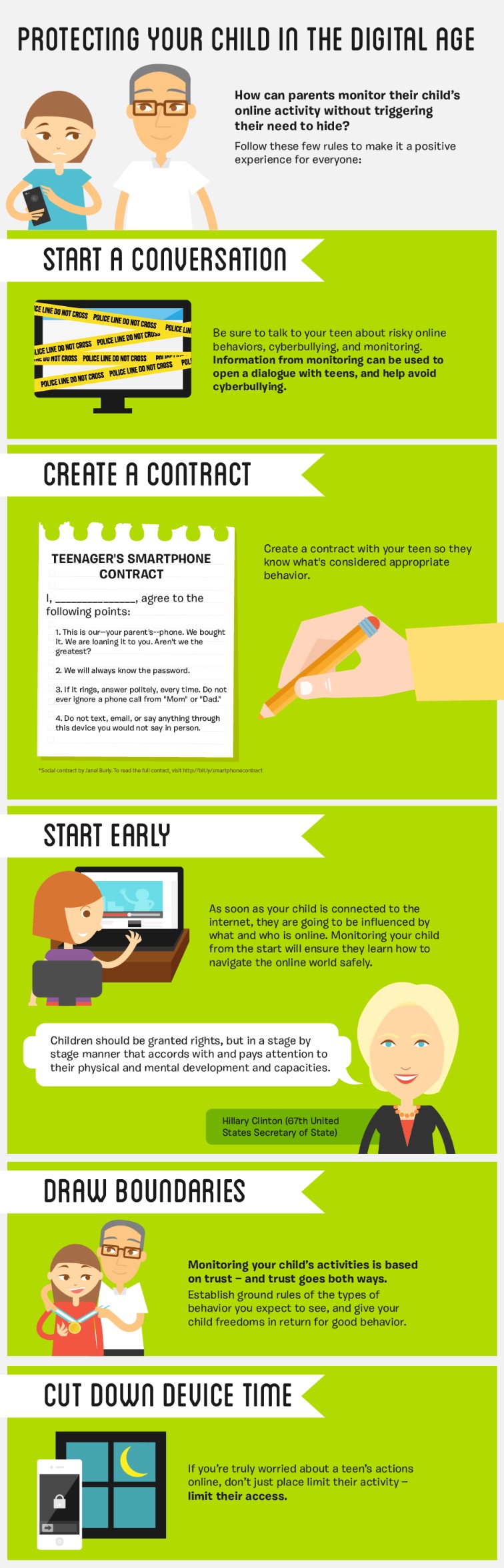 Sometimes, kids don’t put any thought into what they post online. They may post pictures of them making the popular “duck face” or anything else that might make them the target of cyberbullies. Help them monitor their postings, and give guidance along the way.