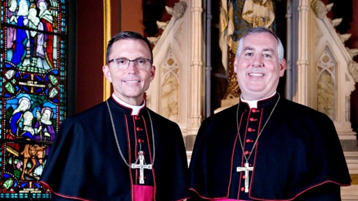 Bishops-elect O’Connell and Reed were named Auxiliary Bishops of Boston by Pope Francis in June. They join four other Auxiliary Bishops in assisting Boston’s Cardinal Seán O’Malley. Currently, Bishop-elect O’Connell serves as Judicial Vicar of the Archdiocese of Boston and is on the faculty at Saint John Seminary and Pope St. John XXIII Seminary. Bishop-elect Reed serves as the CEO of iCatholic Media, Inc., President of the CatholicTV Network, and the Archdiocese of Boston’s Cabinet Secretary for Catholic Media.