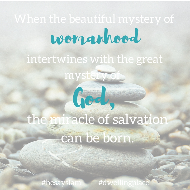 “Woman,” he calls her. Archetypal, she is not just one woman among many, but the Woman, just as Eve was “woman” at creation. In her very being, Mary embodies all of womanhood’s beauty, goodness, and grace. She is as woman was created to be. She first embarked on the journey of walking with the Savior so the rest of us might follow. She shows us what it means to live as a woman overshadowed by the Spirit. And the first thing she teaches us about womanhood is the only thing we really need to know: God dwells in us.