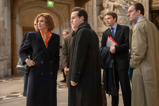 (l to r) Rachel Weisz stars as acclaimed writer and historian Deborah E. Lipstadt, Andrew Scott as Anthony Julius, Jack Lowden as James Lisbon and Pip Carter as Forbes Watson in DENIAL, a Bleecker Street release.