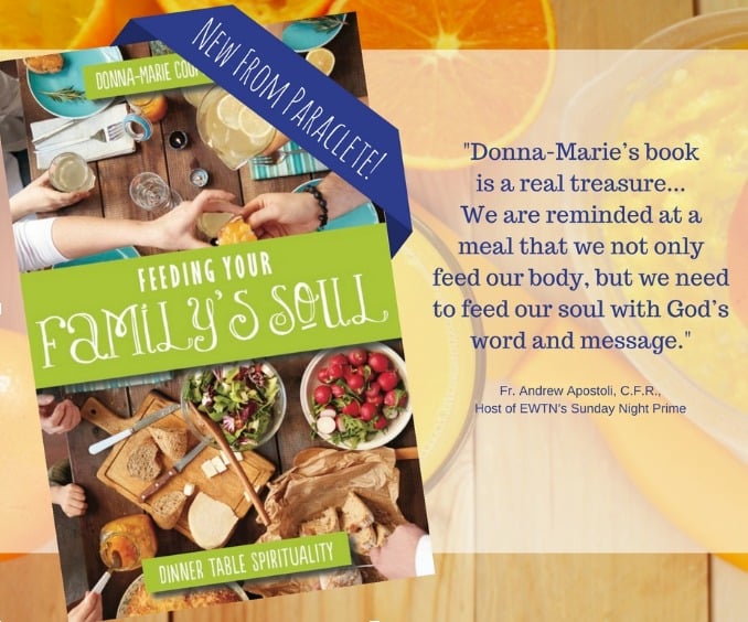 Feeding Your Family's Soul is comprised of 52 short chapters, one for each week, with a brief lesson to share, a prayer, and reflection questions that will spark conversation. There are even some recipes, which I look forward to trying. Donna-Marie encourages readers to involve their children in food preparation, making memories, telling stories and building important skills. As the mom of two young adults who both do their own cooking, I can witness to the importance of learning basic kitchen skills!