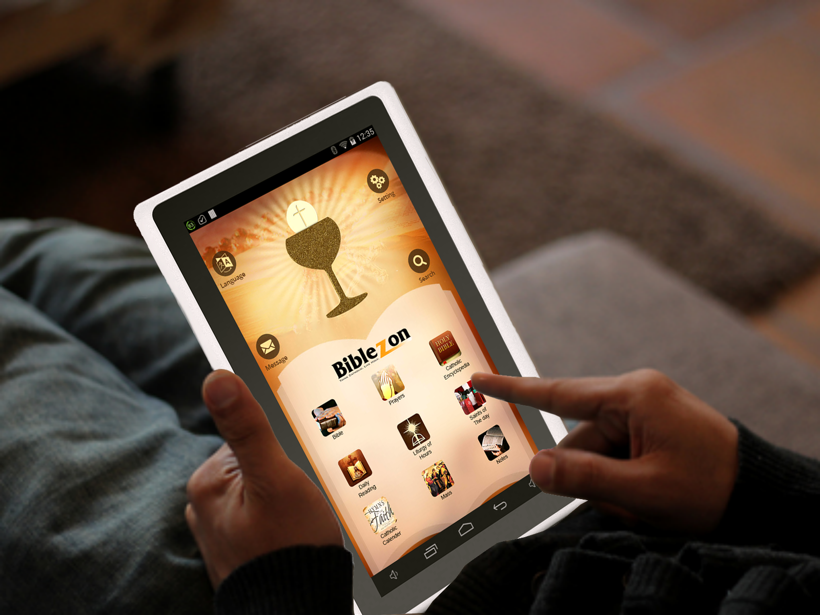 Biblezon is a Catholic tablet that provides a secure, safe and holy environment for Catholic families to learn, live and practice their Catholic faith daily. It has over 50 Catholic apps and games including a Catholic marketplace to download more apps, books, videos and songs.