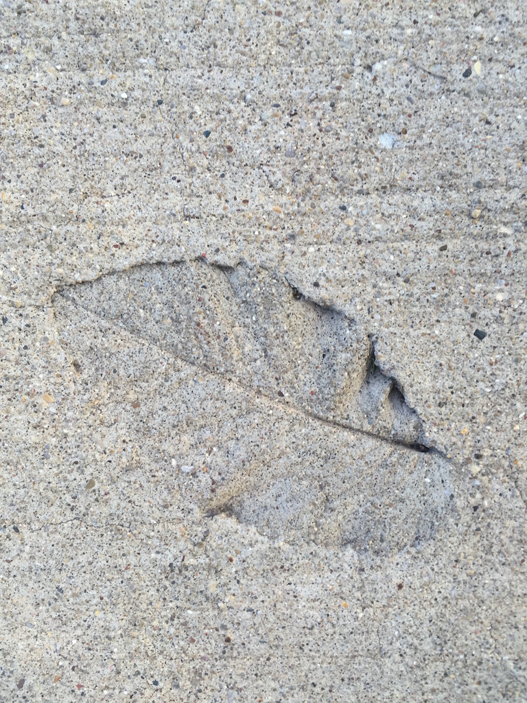 I have oftened wondered, if you're not grateful to God, who are you grateful to? It's like this picture of the leaf. The leaf is imprinted in the concrete without any color. Some would say nature gives the leaf its color, but where does nature come from?