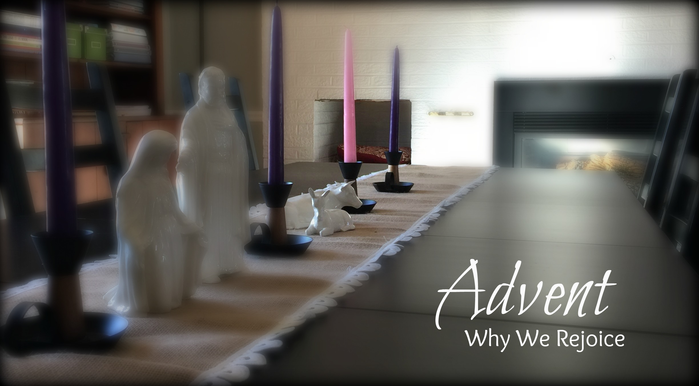 We are now in the third week of Advent, and lighting the third candle (the "Gaudete" candle) reminds us that we are to rejoice. The chorus of O Come Emmanuel calls us to "Rejoice, rejoice..." -- in Latin, "Gaude, gaude..." The brightening of the Advent purple to the color rose is a visual prompt to brighten our hearts at the anticipation of our savior's birth.
