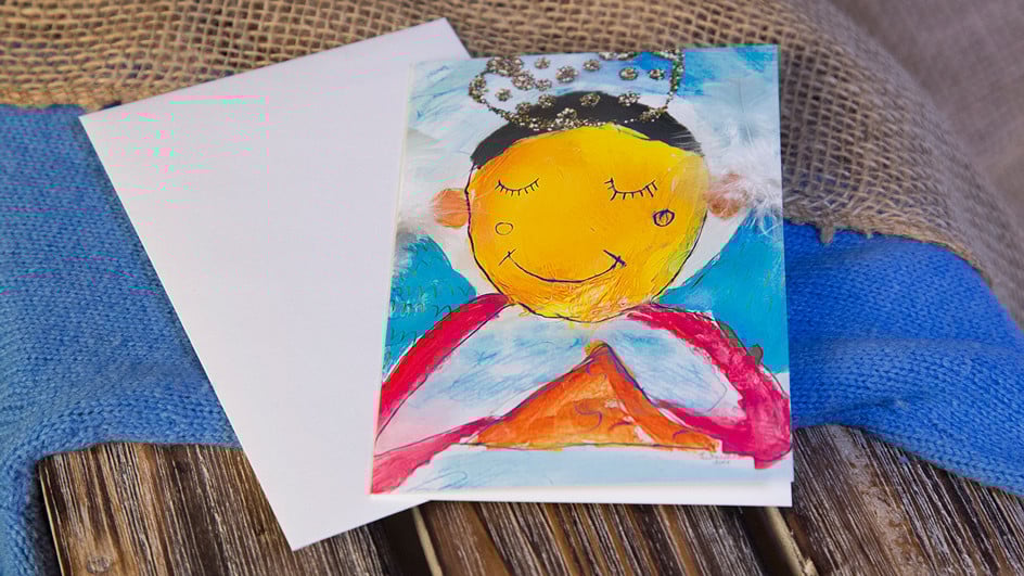 “My husband and I were welcoming our third daughter when we found out that she would not live very long. Grace lived with us for three days until she left us for her eternal home. My husband gave me a baby-ring-necklace made in memory of Grace. This inspired me to create something for mothers who lost babies. Eighteen months later our son was born. When he was six years old he painted a picture of an angel which we call Sweet Little Soul. His painting reminds me we are created for this life and for eternal life in heaven with God. His beautiful watercolor reminded me of Grace."