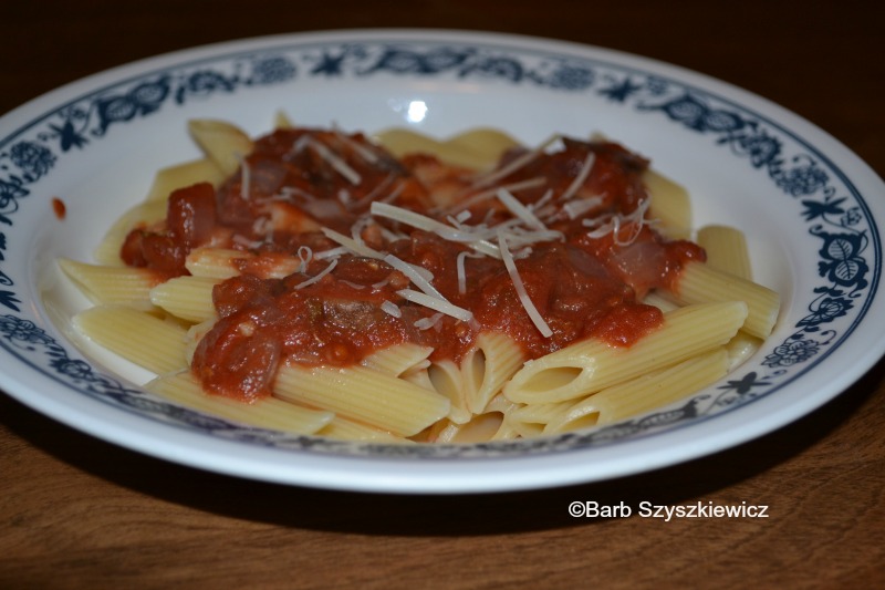 Serve over pasta with Parmesan and extra crushed red pepper if you like it hot!