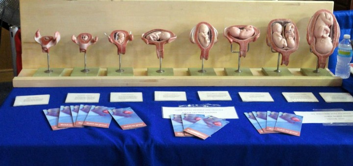 On the day of Sextravaganza, Gerri ventured into the auditorium to see just how Grace was faring. Surprisingly, rather than being stuck in some dark corner, Grace’s booth was prominently located at the very center of the room. “It had the most students—around a dozen at the time—far more than any other booth,” Gerri said during and interview for this article. “Grace had laid each baby out separately in a baby blanket,” she explained. “Guys would pick and hold the 20-week baby and girls would take it and show them how to do it.” Gerry said she heard only positive comments, such as students saying: “I didn’t know babies were this developed at that stage.” She learned from Grace that it had been like that throughout the day, with small crowds gathering and even a few faculty members.