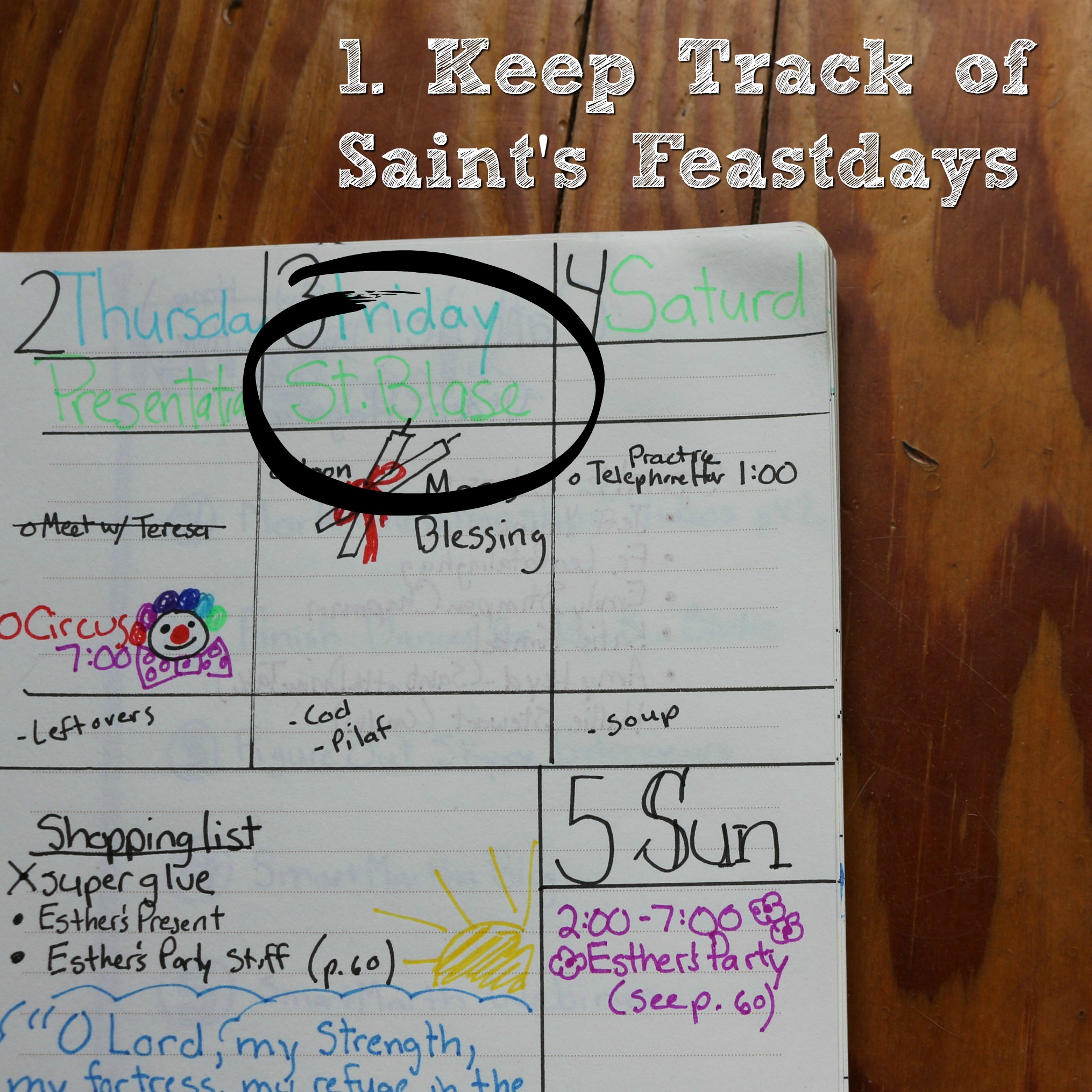 Another way I use my bullet journal in a Catholic way is to keep track of the feast days. It's not that I always get around to celebrating them, but at least I can easily see that a feast day is coming. And if we are too busy that day for our family to even say a prayer together to St. Scholastica, I can remember to pray to her throughout my day begging for her intercession as I am referring to my bullet journal. On my website, I've included a complete list of these Catholic bullet journal ideas.