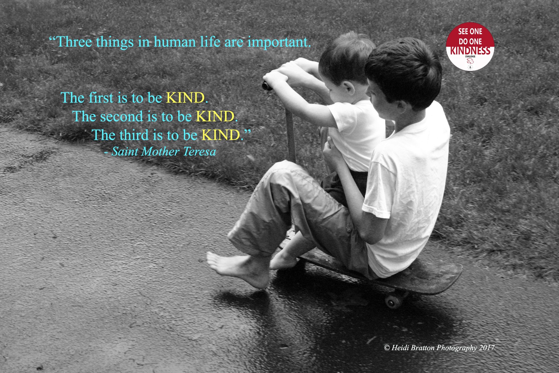 So what did St. Mother Teresa do differently that made her an internationally known epicenter of love and kindness? She understood that kindness begets more kindness. She operated out of the knowledge that kindness is not only like a balloon, but that it is also like an earthquake. The effect of kindness both lifts people up no matter what is clouding their everyday circumstances and radiates out, surges down the street from one person to the next, touching heart, minds, and hands with warmth and lightness. The uplifting, radiant, and encouraging natures of the virtue of kindness mean we don’t have to marshal a campaign and storm the streets with kindness in order to better the world around ourselves. St. Mother Teresa didn’t encourage anything of the sort. Instead she rhetorically asked and answered, “What can you do to promote world peace? Go home and love (be kind to) your family.” In treating our kin with kindness, those adorable, but pesky ones always crying out for our attention, we act on the belief that the kindness we show in our home will quickly radiate to and surely impact the whole world and that the opposite, unkindness, will do the same.