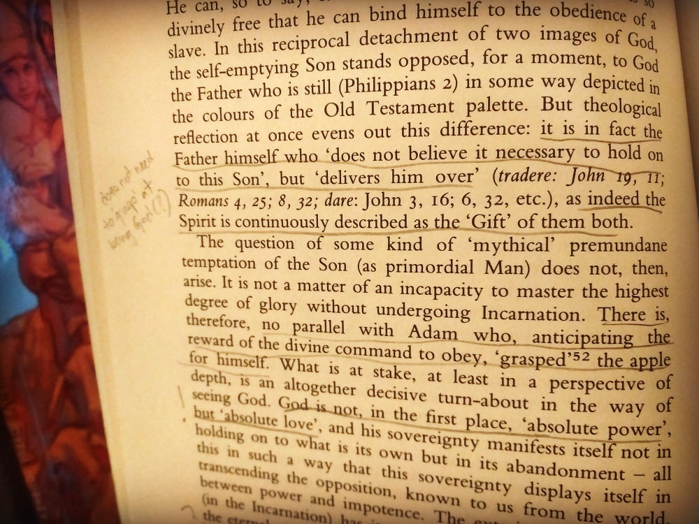 Balthasar drew me into unfathomable discussions around the concept of divine self-emptying, or kenosis. I really mean that - in no part of my history had I thought discussions about Jesus' becoming human could be so, so deep. In his book, Mysterium Paschale, Balthasar expounds upon the depth of God’s self-giving, so scandalous a thing. Many Christians today are still scandalized at the thought of how empty God became of divinity. In no way does Jesus' full humanity deny his full divinity, and that is one amazing thing.