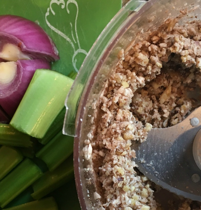 Using a food processor instead of chopping the veggies makes prep-time for Walnut Bolognese a breeze. The best traditional sauce concepts combined with contemporary vegan cookery, this hearty meatless sauce can be served over pasta in just about 35 minutes, start to finish. The secret to getting a rich sauce more quickly is doing a really good job sautéing the walnut-veggie mixture, turning up the heat, decreasing the liquid. Browned foods taste good!