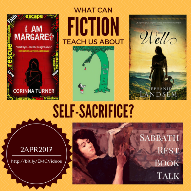 Finally, if you like chatting about books, Erin McCole Cupp hosts a monthly Sabbath Rest Book Talk. I recently joined her, along with Rebecca Willen, to discuss books that include themes of self-sacrifice. Take a look!