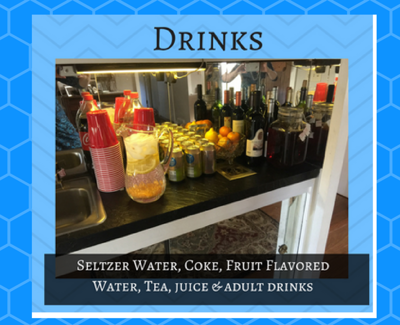 I also had a fun beverage bar including seltzer water, sweet tea, coffee, soda, beer, wine and my personal favorite, a fresh pitcher of water with sliced lemons and oranges.