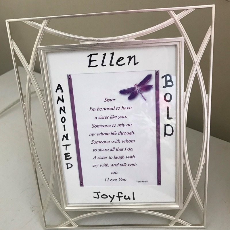This year I bought each of us a framed poem on sisters. I presented the gift to each of my retreat sisters. I instructed them to write on each sister’s matting one quality they saw in that sister. The poem says it all but the personal qualities written down from the heart make it our own. My picture sits on my desk reminding me of the faithfulness of God. You see God taught me a long time ago to pray that He would give me the friends that He wanted me to have. “God gives His best to those who leave the choice up to Him.” These three girls are more than friends. The journey we have taken together has made us sisters.