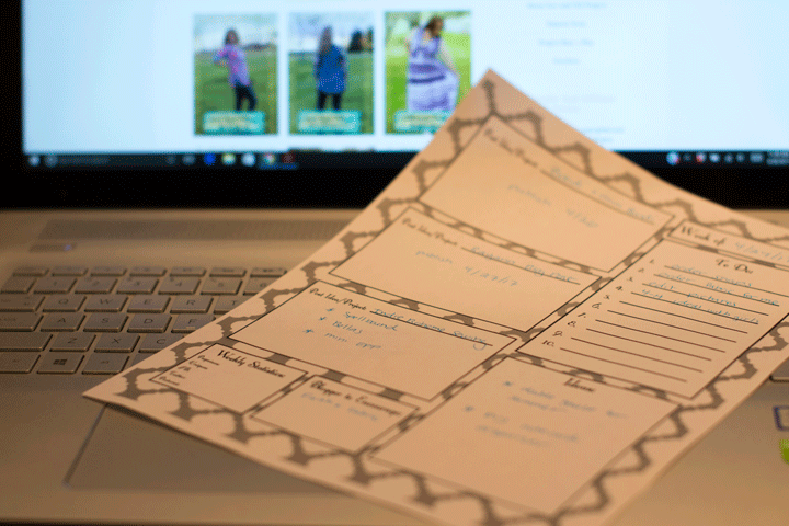 - The second major component of my work space is actually a binder. I keep a large 3 ring binder filled with deadlines, patterns in progress to make or edit, accounting, affiliate programs, and inspiration for devotionals and articles. The idea behind this binder is that I can get some work done ANYWHERE. The idea is not that I end up working all the time, but that I can work when I'm waiting at the doctor's office or outside of basketball practice. I can also jot things down as I think of them. (I do also keep some home management, 4-H, and homeschool related information in this binder). I should also note that I do use a fair amount of digital resources to organize and communicate with my team but that would require a whole different post.