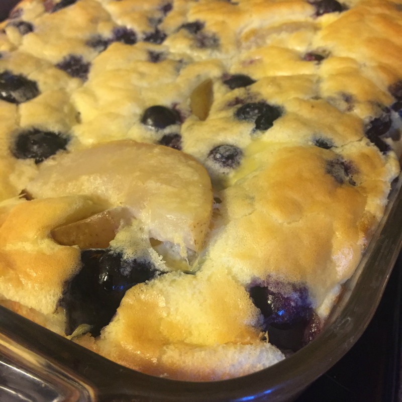 Preheat oven to 400F. Slice pears into ½” wedges, if not already sliced, and arrange in the bottom of a greased 9X13 baking pan. Place eggs, milk, flour, salt, melted butter and vanilla extract in a blender and process until smooth, scraping flour off sides as needed. Pour batter over arranged pears and sprinkle with blueberries. Bake at 400°F for 20 minutes or until golden brown and cooked through. Serve immediately. Sprinkle with powdered sugar, if desired.