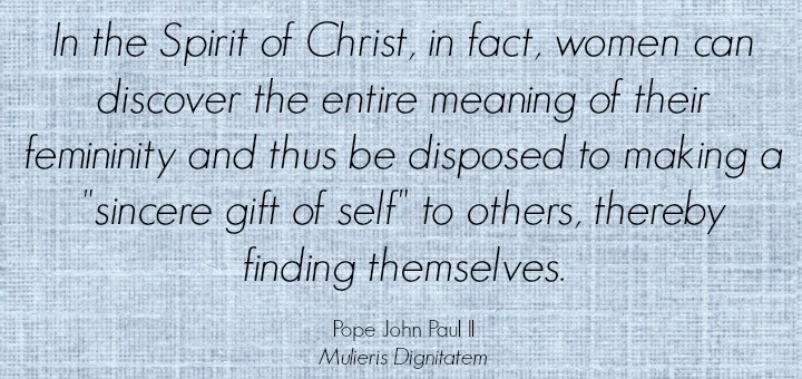 I recently read and wrote about St. John Paul II's apostolic letter Mulieris Dignitatem. It was a timely read, as May is the month we celebrate both mothers in general and our own Mother of the Church, Mary. But it was also timely for me because I have been reflecting on the idea of motherhood in culture today. The letter was such a life-giving exhortation to me of "the dignity and vocation of women," and one of the main themes that runs throughout is the fact that every woman is created for, and is therefore called to, motherhood.