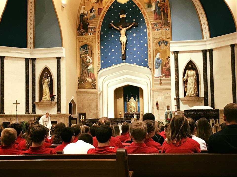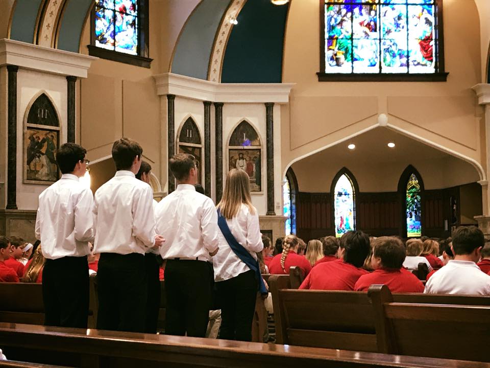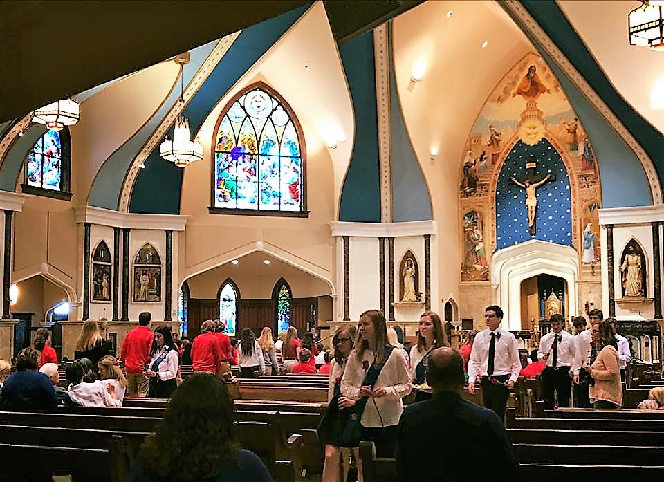 This year, as I approached the church, a sea of red school-uniform shirts were blazing a long trail from the school a few blocks away. As a Catholic-school mom of 17 years now, I still delight in seeing our students living out these unique aspects of their Catholic education. On such occasions, I am reminded what a blessing it is that they can demonstrate their faith life in such a vivid way.