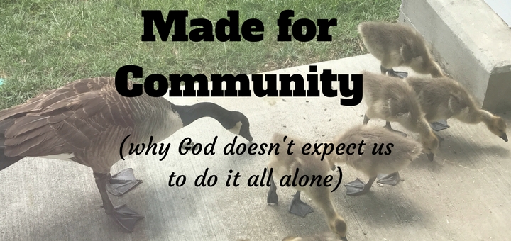 God did not design us to travel this journey alone. We were made for community. Our God, who created the heavens and the earth and each of us, is a God of relationships. He began this work in community - Let us make man in our image! - and called it good. He saw that it was not best for man to be alone, and he made a partner for him.