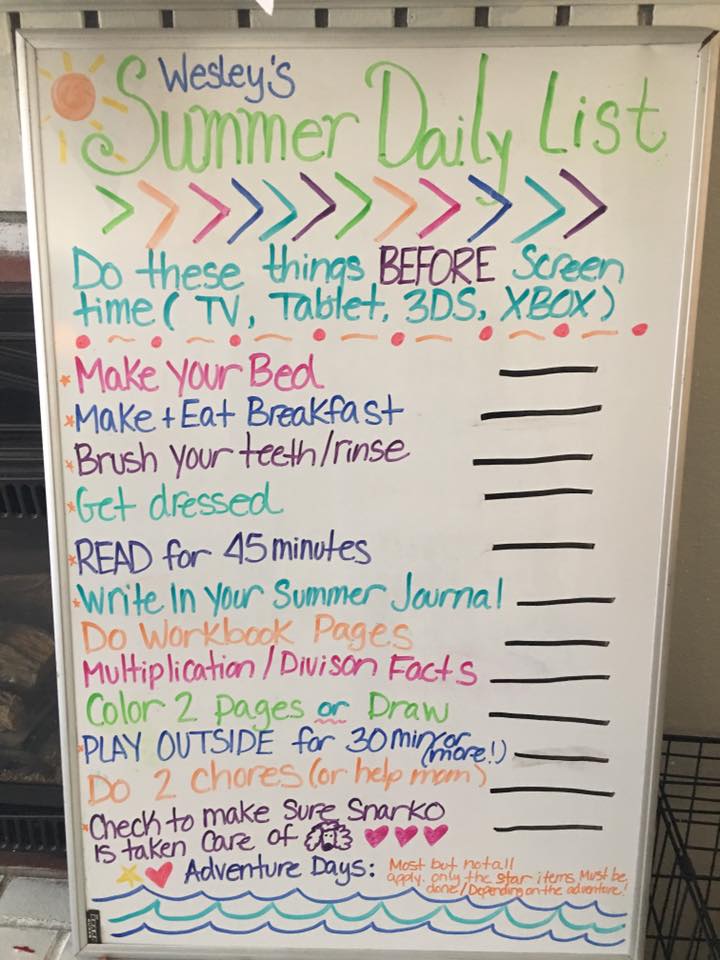 Recently--and perhaps this is ironic--I caught a moment of pure genius on Facebook. My friend Rahnell posted this photo, sharing her son Wesley's "summer daily list":