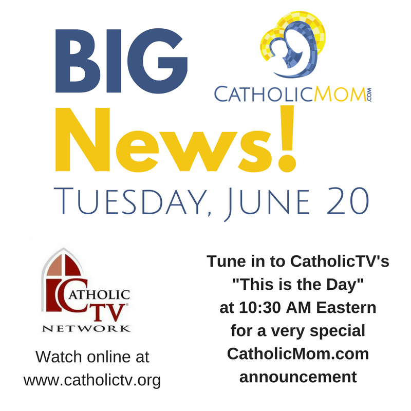 [tweet "BIG @CatholicMomWeb news! Watch on 'This is the Day' on @CatholicTV Tuesday 10:30 AM ET"]