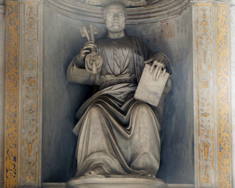 Saint John the Baptist is the patron of the ones wronged because of the faith, considering that he died because he announced the Kingdom of God and asked for the conversion of the sinners. Saint Peter, the first Pope, is the patron of the fishermen (it was his profession before he followed Jesus) and the patron of the widows (because the Gospel talks about his mother in law, but not his wife, so one can assume he was a widow). Besides that, he is represented with keys in his hands, “the keys of the Kingdom of Heaven,” that Jesus trusted him. (Mt 16:19)