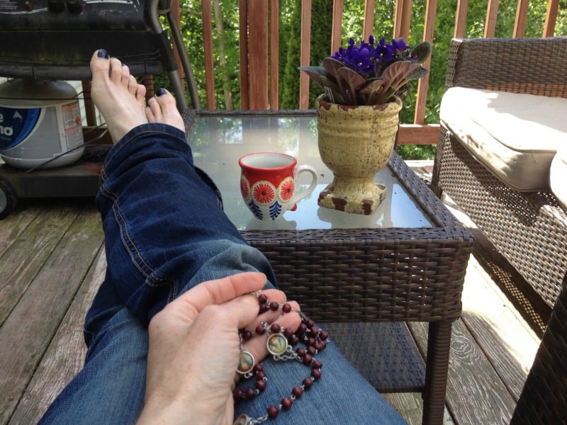 feel good. But here is a secret I will share with all of you young moms "in the trenches." The older moms are in the trenches with you! Our trenches just look different, and come with a fully stocked bar, because we are no longer getting pregnant or nursing. And prayer doesn't have to feel good to count. And my daily structured prayer routine? Lately, it hasn't been so structured. Sick kids, end of school madness, work deadlines,