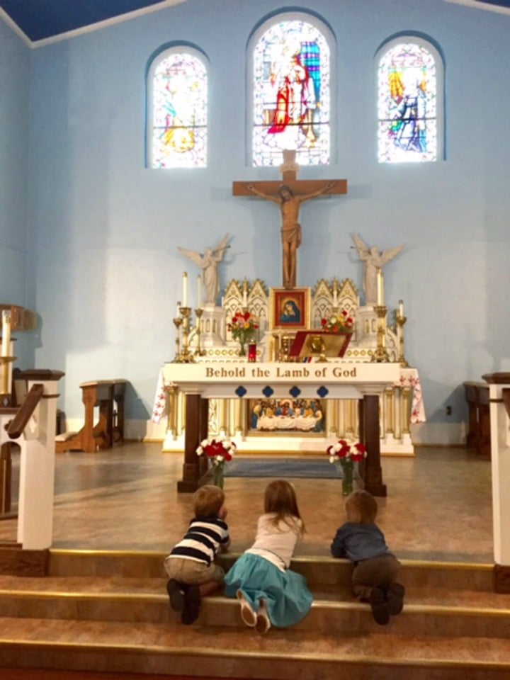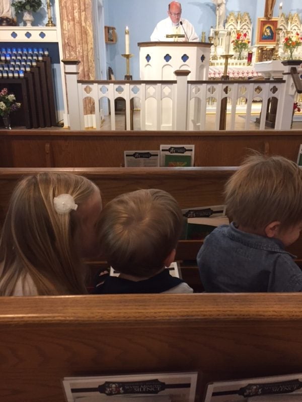 Recently, I received a text from a young, mom friend, who I see at daily Mass with her two little ones.