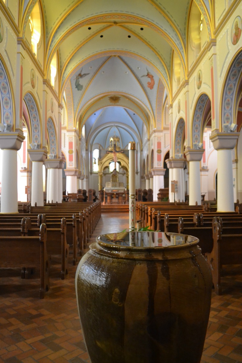 And relief I found. In the quiet midday, the baptismal font beckoned, offering immediate reprieve.