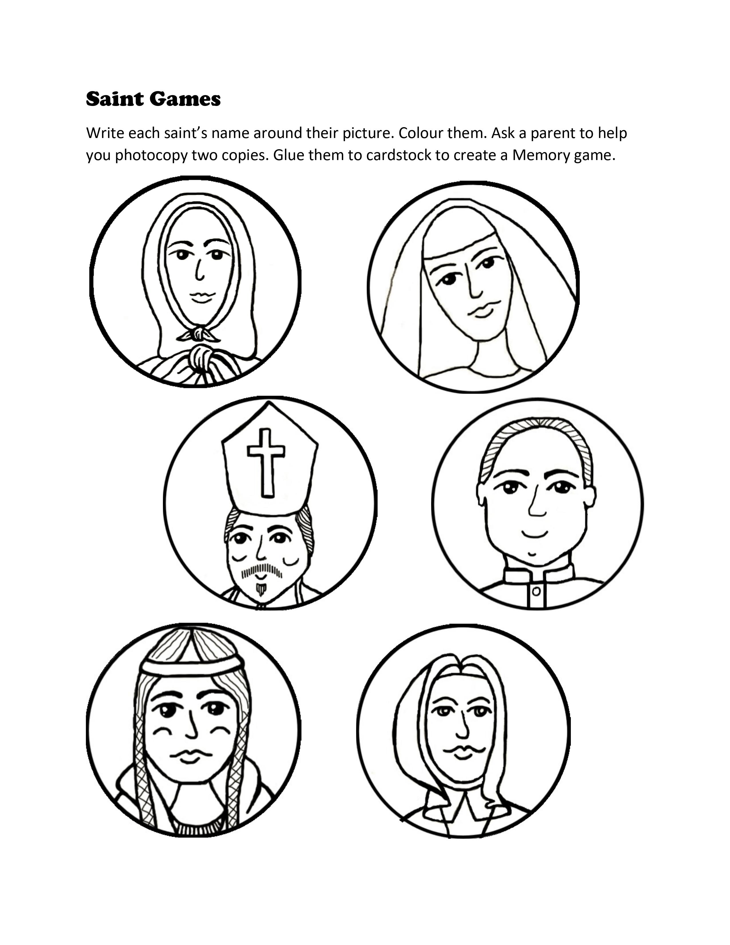 Download and print these sample pages from Canadian Saints Kids Activity Book: