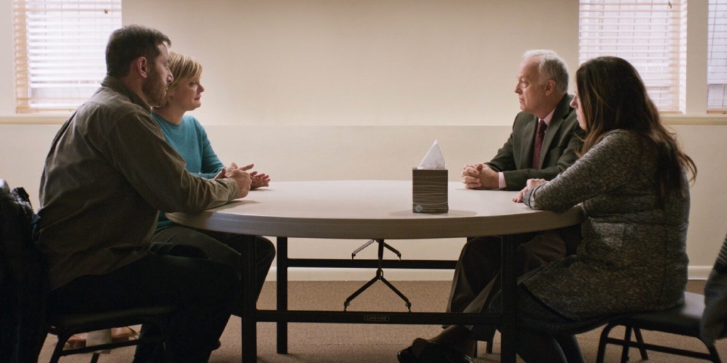 We, as onlookers, are tempted immediately to side with Gail and Jay as they grasp for some sort of admission from the troubled shooter’s parents that they felt responsible for what has transpired. What is perhaps unexpected is the unfolding of grief from Richard and Linda, who not only deal with daily remorse for their responsibility in their son’s actions but also with an impermissible loss of their own.